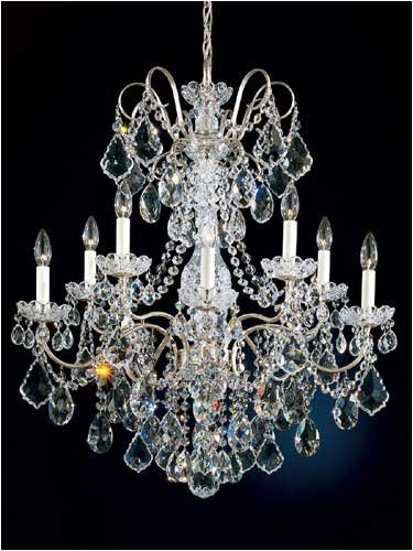 Ten Light Chandelier from the New Orleans CollectionPass on, if you are timid in matters of décor. New Orleans is a crystal chandelier for the homeowner unafraid of making a brilliant display. Here is the opulence of French Baroque styling in all its glory. Ornate frame, cut crystal column and a dizzying array of crystal shapes conspire to overwhelm your guests.Ten light up lighting chandelierAvailable in a variety of finishes and crystal optionsRequires 10 60w Candelabra base bulbs (not included)Supplied with 40" of chain and 122" of wire