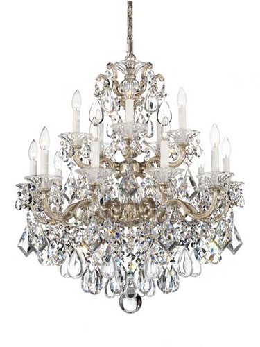 Fifteen Light Two Tier Chandelier from the La Scala CollectionThis Baroque-style crystal chandelier is noteworthy for its ornate arms and scrolls cast from 100-year-old Schonbek family molds. The varied shapes of the handcut crystal hark back to sixteenth-century chandeliers hung with irregular rock crystal. Variety of crystal chandelier sizes available, as well as wall sconces and matching candelabra.Fifteen light up lighting two tier chandelierAvailable with Handcut, Optic Handcut, Swarovski Spectra, or Teak crystal optionsRequires 15 60w Candelabra base bulbs (not included)Supplied with 120" of chain and 161" of wire
