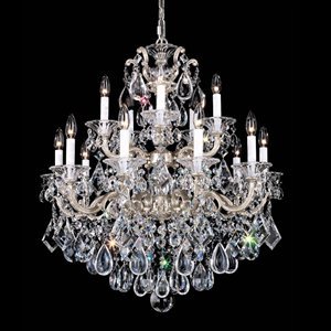Manufacturer: Schonbek Worldwide Lighting Style: Traditional Type: Chandeliers, Crystal: Heritage Handcut? Finish: Antique Silver Light Bulb: (15)60w C10 Cand C Incand Description: La Scala 15 Light Chandelier. This baroque style crystal chandelier is noteworthy for its ornate arms and scrolls cast from 100-year old Schonbek family molds. The varied shapes of the handcut crystal hark back to sixteenth-century chandeliers hung with irregular rock crystal. Includes 120? chain and 161? wire for hanging.