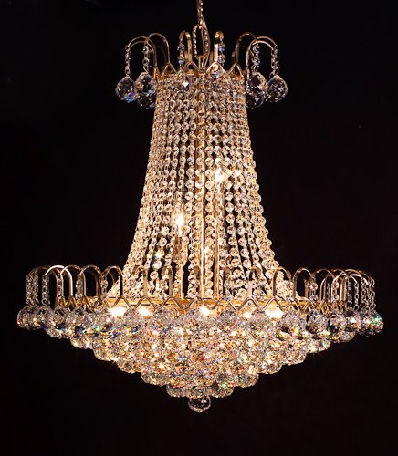 With its unique styling and design, this 100% authentic crystal chandelier is designed to compliment both modern or traditional interiors. The first grade Egyptian ASFOUR crystal sphere and strands refract lights into its full spectrum of colors. The use of crystal spheres and strands convey a sense of classiness while the simplistic styling in the frame makes it a piece of contemporary art. 15 lights enlighten the crystal spheres as well as the surrounding, more than enough to illuminate the biggest of rooms. Takes 15 candelabra bulbs up to 60W each (bulbs not included)