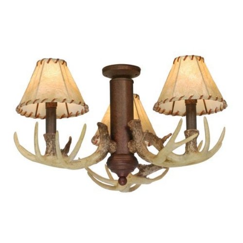The Rustic Antler Lodge collection is just the thing for your summer house or log cabin or maybe you just want a rustic look for your home. This series features Faux Leather Shades or French Scavo Glass depending on the fixture. All fixtures feature an Antler Finish. Coordinating fixtures include chandeliers, wall sconce lighting, pendant lighting, semi flush ceiling lighting, ceiling fans, mini pendant lighting, bathroom vanity lighting, ceiling fan light kits, floor lamps and table lamps. Scroll down to view all the related lighting products for this item.