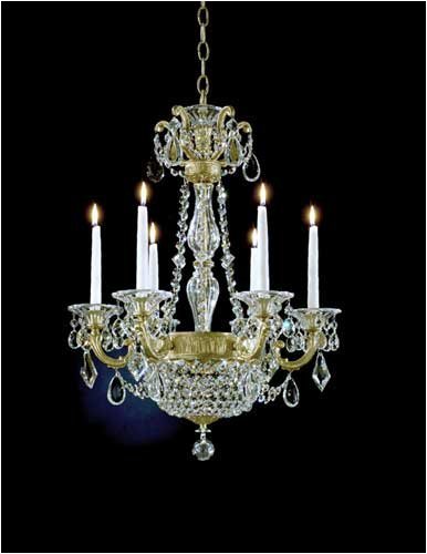 Eight Light Chandelier from the La Scala Empire CollectionThis rendition of La Scala exhibits a variety of design motifs, all of them tending to magnificence. Empire styling is evident in the crystal basket densely woven of chains of octagons. Baroque influences are apparent in the ornate cast arms and scrolls. Handcut crystal pendants and gems in classic shapes bedazzle the eye.Eight light up / down lighting chandelierAvailable with Handcut, Swarovski Spectra, Optic Handcut or Golden Teak crystal optionsRequires 8 60w Candelabra base bulbs (not included)Supplied with 40" of chain and 120" of wire
