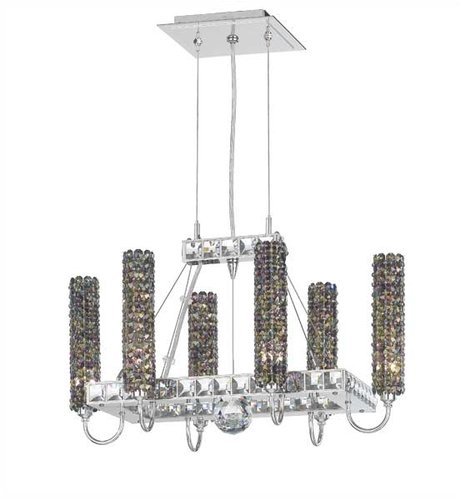 Six Light Rectangular Chandelier from the Geometrix- Elements CollectionThere are two Elements chandelier styles. This one looks rather like a solar system.The basic building block of the Elements collection is an elemental cylinder, perfectly rigid and richly encrusted with Strass crystal. Here the crystal cylinders orbit a massive Strass crystal sphere at the heart of the chandelier.There?s the merest ring of a gallery composed of large faceted square Strass crystal gems. This unusual gallery is suspended by airplane cable.As with any celestial system, open space is an important part of the design. All the elements of Elements appear to float in space.Six light up lighting rectangular chandelierFeaturing a variety of crystal optionsRequires 6 35w G9 base Halogen bulbs (included)Supplied with 12 feet of wire and cable