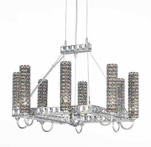 Eight Light Rectangular Chandelier from the Geometrix- Elements CollectionThere are two Elements chandelier styles. This one looks rather like a solar system.The basic building block of the Elements collection is an elemental cylinder, perfectly rigid and richly encrusted with Strass crystal. Here the crystal cylinders orbit a massive Strass crystal sphere at the heart of the chandelier.There?s the merest ring of a gallery composed of large faceted square Strass crystal gems. This unusual gallery is suspended by airplane cable.As with any celestial system, open space is an important part of the design. All the elements of Elements appear to float in space.Eight light up lighting rectangular chandelierFeaturing a variety of crystal optionsRequires 8 35w G9 base Halogen bulbs (included)Supplied with 12 feet of wire and cable