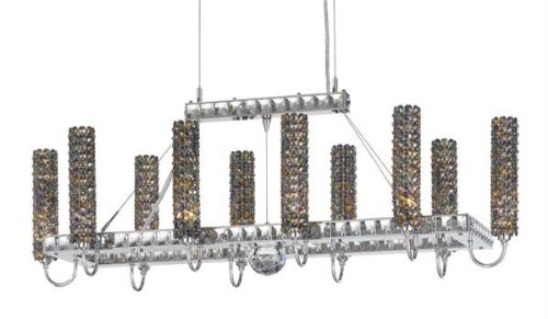 Ten Light Rectangular Chandelier from the Geometrix- Elements CollectionThere are two Elements chandelier styles. This one looks rather like a solar system.The basic building block of the Elements collection is an elemental cylinder, perfectly rigid and richly encrusted with Strass crystal. Here the crystal cylinders orbit a massive Strass crystal sphere at the heart of the chandelier.There?s the merest ring of a gallery composed of large faceted square Strass crystal gems. This unusual gallery is suspended by airplane cable.As with any celestial system, open space is an important part of the design. All the elements of Elements appear to float in space.Ten light up lighting rectangular chandelierFeaturing a variety of crystal optionsRequires 10 35w G9 base Halogen bulbs (included)Supplied with 12 feet of wire and cable