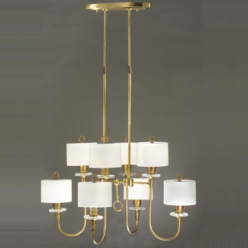Stylicon - AA1501-AQB : Meridian Eight-light two-tier chandelier, Acquisition brass finish, White linen glass shades, 24% lead crystal bobeches.