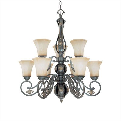 Features: -Nine light chandelier. -Brussells collection. -Belgium bronze finish. -Fresco glass shade. -Traditional style. -Assembly required. Specifications: -Nuvo provides one year warranty. -Accommodates (9) 60W A19 medium base bulb. -Overall dimensions: 35'' H x 30.75'' W.
