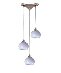 ELK Lighting 101-3WH Mela 3 Light Single Tier Chandelier in Satin Nickel with Simple White glass Feature