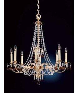Eight Light Chandelier from the Adagio CollectionThis crystal chandelier is very vintage, and very European, with amber and amethyst colored crystal fruit. The harmonious shape of Adagio evokes past centuries when gracefully-bejeweled women were great patrons of art and music. Leaf ornaments are Florentine-inspired. The shades, which are optional, intensify the femininity of the design.Eight light up lighting chandelierAvailable in a variety of finishes and crystal optionsRequires 8 60w Candelabra base bulbs (not included)Supplied with 40" of chain and 149" of wire